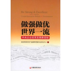 國務(wù)院國有資產(chǎn)監(jiān)督管理委員會(huì)研究中心緊密圍繞國資委的中心工作,組織人員專門就中央企業(yè)改革發(fā)展的“一大目標(biāo)”,“五大戰(zhàn)略”,“三大保障”內(nèi)容進(jìn)一步細(xì)化和擴(kuò)展。出版《做強(qiáng)做優(yōu),世界一流:中央企業(yè)改革發(fā)展新目標(biāo)》,旨在對(duì)中央企業(yè)改革發(fā)展目標(biāo)和戰(zhàn)略部署進(jìn)行梳理和前瞻性的闡述,就培育一批具有國際競(jìng)爭(zhēng)力的世界一流企業(yè)應(yīng)具備的基本要素、實(shí)施戰(zhàn)略和創(chuàng)新探索等重要內(nèi)容提出了政策性、操作性和建設(shè)性的理論思考和改革設(shè)想。