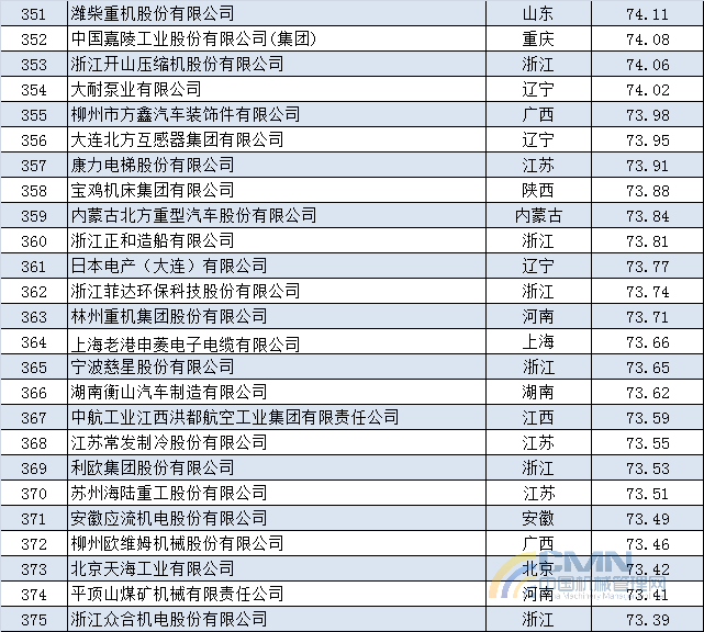 2014年中國(guó)機(jī)械500強(qiáng)排名