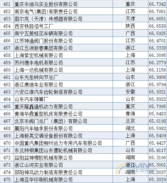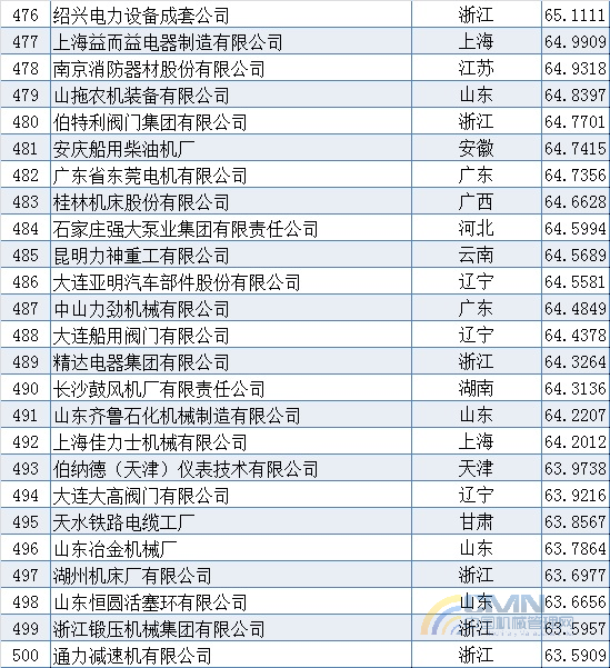 2008年中國機械500強排名(401-500)