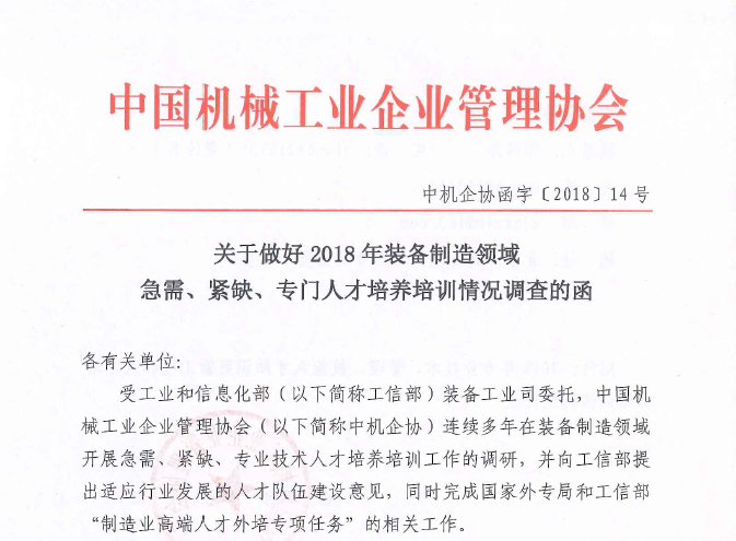 2018年裝備制造急需緊缺專門(mén)人才培養(yǎng)培訓(xùn)調(diào)查工作啟動(dòng)