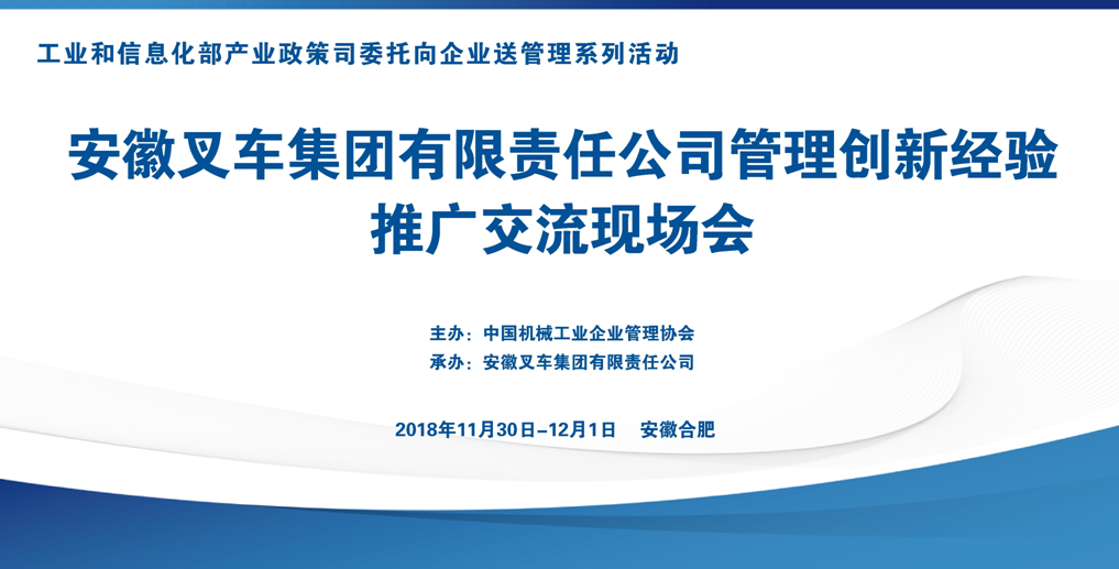 2018年11月29日-12月1日,工信部產(chǎn)業(yè)政策司委托中國(guó)機(jī)械工業(yè)企業(yè)管理協(xié)會(huì)(簡(jiǎn)稱中機(jī)企協(xié))主辦、安徽叉車集團(tuán)有限責(zé)任公司(簡(jiǎn)稱合力)承辦的機(jī)械行業(yè)“向企業(yè)送管理”現(xiàn)場(chǎng)交流活動(dòng)在安徽省合肥市隆重舉辦。工信部產(chǎn)業(yè)司產(chǎn)業(yè)組織處處長(zhǎng)匡佩遠(yuǎn),趙薛憶,中機(jī)企協(xié)理事長(zhǎng)孫伯淮,常務(wù)副理事長(zhǎng)李玲,副理事長(zhǎng)于中赤、張德進(jìn)、張愛群,以及來自機(jī)械行業(yè)的企業(yè)代表180余人參加了活動(dòng)。