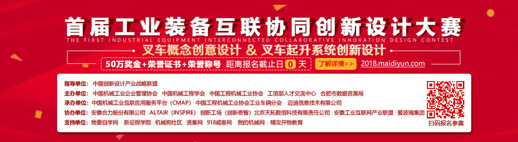 首屆工業(yè)裝備互聯(lián)協(xié)同創(chuàng)新設計大賽(叉車專題賽)是適應形勢,適應發(fā)展,適應需要,應運而生的一屆全新賽事,本屆競賽是與以往多次組織的賽事完全不同的一次大賽,是主辦方通過中國機械工業(yè)互聯(lián)應用服務平臺(CMAP)為本次大賽提供資源平臺,由CMAP邁迪云和設計工具(邁迪設計包、Inspire等)服務整個賽事;是開放的、沒有圍墻場地、沒有固定時點、凸顯設計水平的競賽。