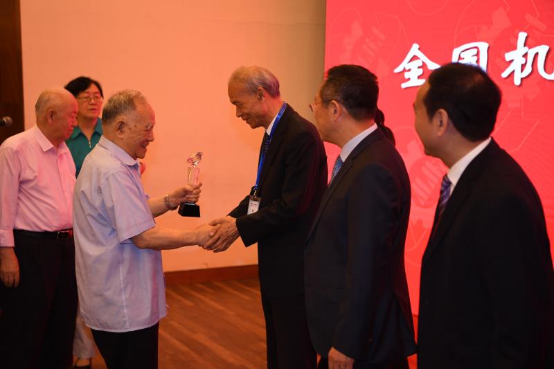 孫伯淮、于中赤兩位理事長(zhǎng)將“中國(guó)機(jī)械工業(yè)企業(yè)管理終身榮譽(yù)獎(jiǎng)”送到何光遠(yuǎn)、陸燕蓀、孫祖梅三位機(jī)械工業(yè)老領(lǐng)導(dǎo)手中