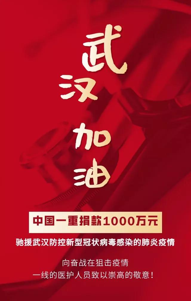 疫情侵襲,一重有情。2020年1月30日,中國一重集團有限公司通過國務(wù)院國資委,捐贈1000萬元現(xiàn)金,用于采購防控新型肺炎疫情的醫(yī)用耗材、防護用品,以及支援抗擊疫情一線的醫(yī)護人員,馳援湖北抗擊新型肺炎疫情。同時,中國一重向所有受到疫情影響的人們表示衷心的慰問,向所有奮戰(zhàn)在疫情防控一線的工作人員致以崇高的敬意!
