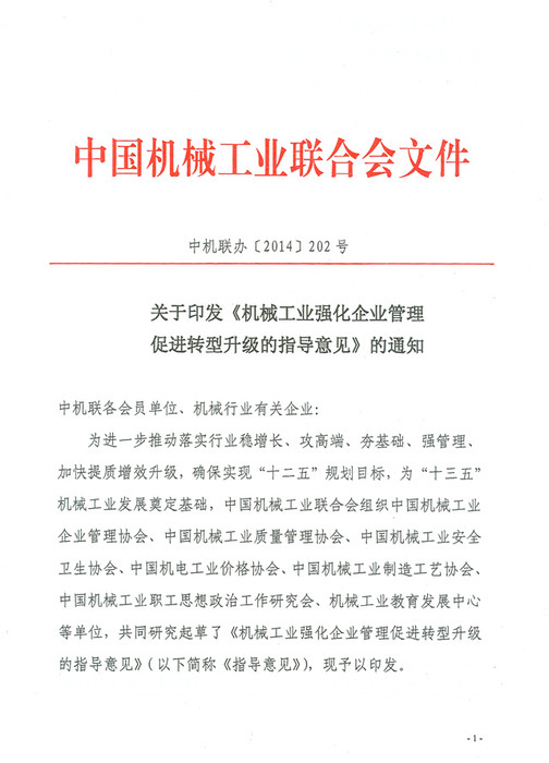 關(guān)于印發(fā)《機械工業(yè)強化企業(yè)管理促進轉(zhuǎn)型升級的指導(dǎo)意見》的通知