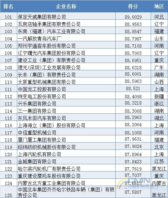 2006年中國機械500強排名(101-200)
