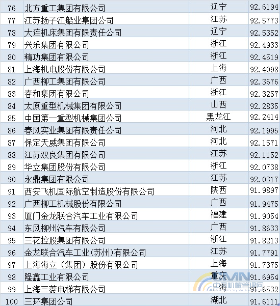 2009年中國(guó)機(jī)械500強(qiáng)排名(1-100)