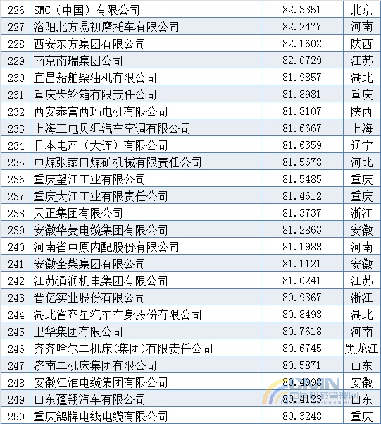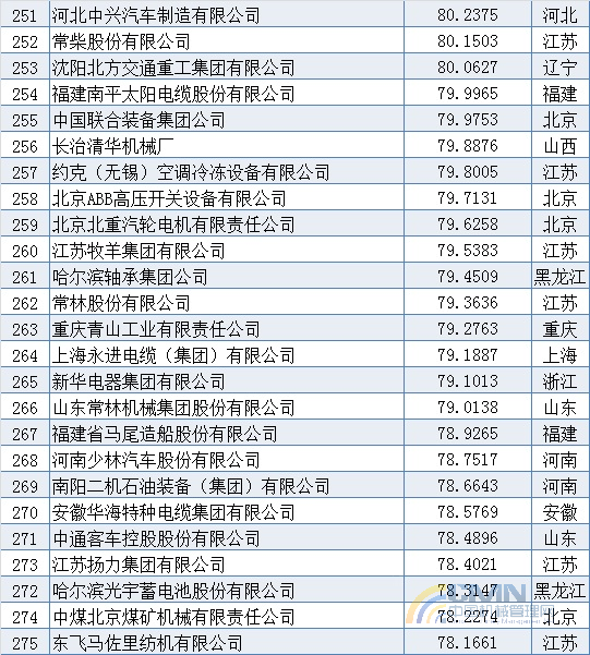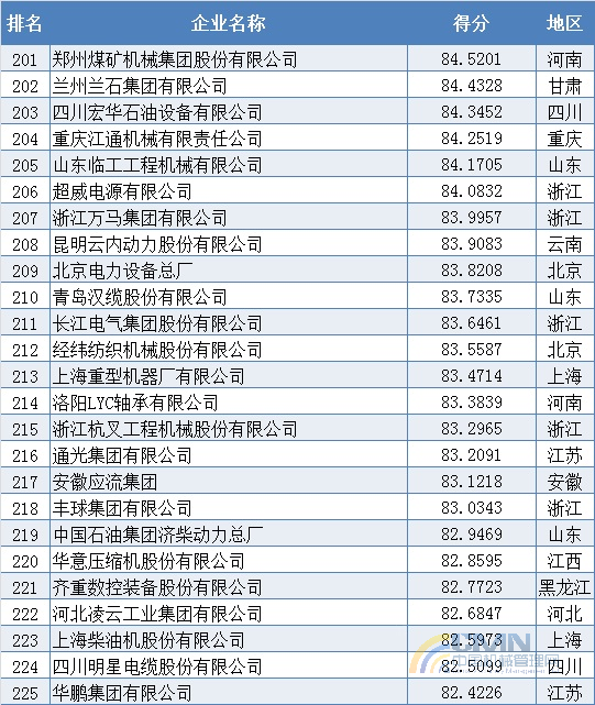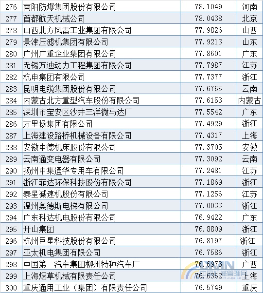 2010年中國機(jī)械500強(qiáng)排名(201-300)