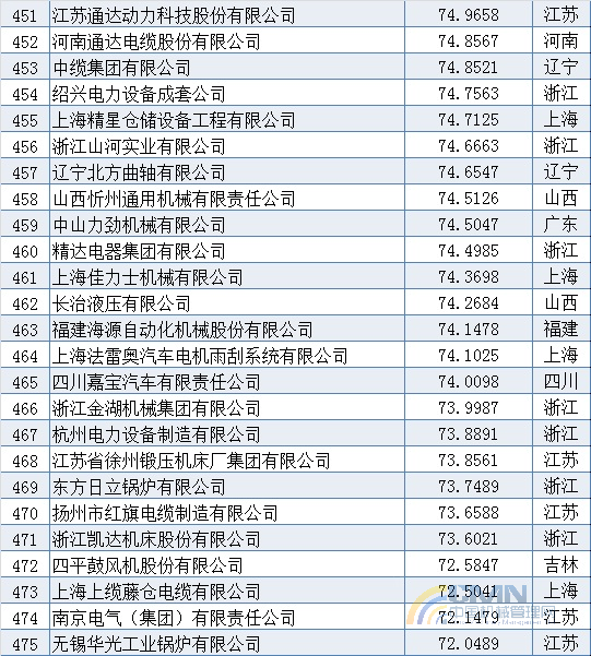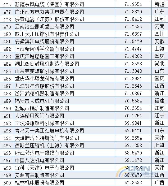 2011年中國(guó)機(jī)械500強(qiáng)排名(401-500)