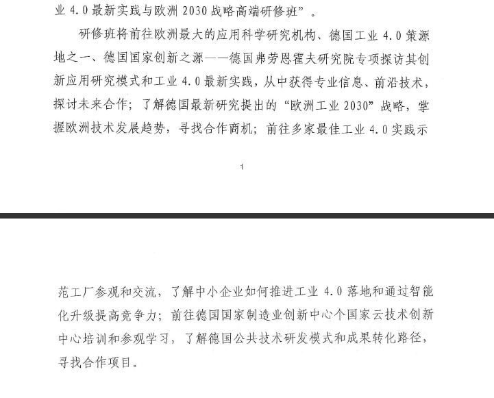 關(guān)于在德國(guó)舉辦"工業(yè)4.0"最新實(shí)踐與"歐洲工業(yè)2030"戰(zhàn)略高端研修班的通知