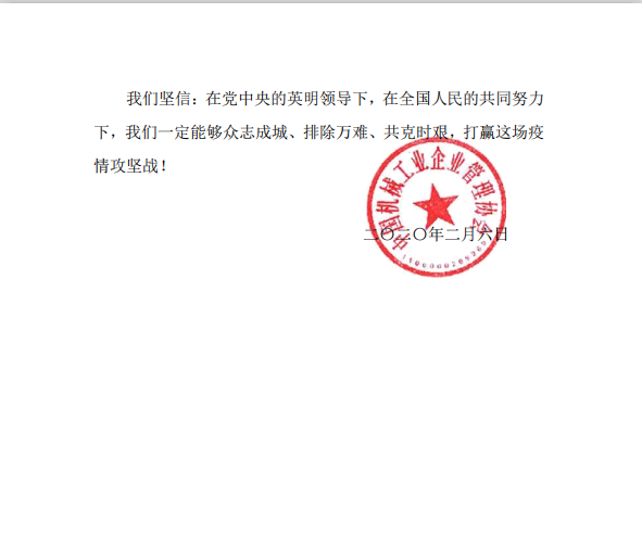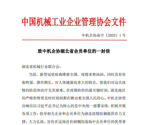 全民抗疫 同舟共濟(jì) 中機(jī)企協(xié)致信慰問(wèn)湖北省會(huì)員企業(yè)