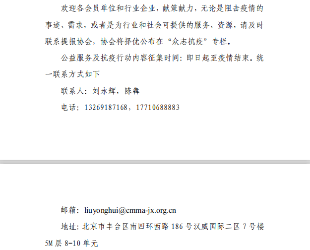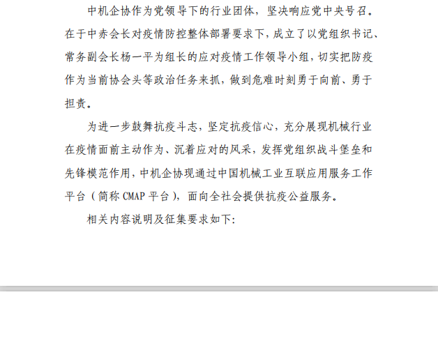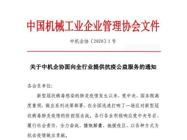 關(guān)于中機企協(xié)面向全行業(yè)提供抗疫公益服務(wù)的通知