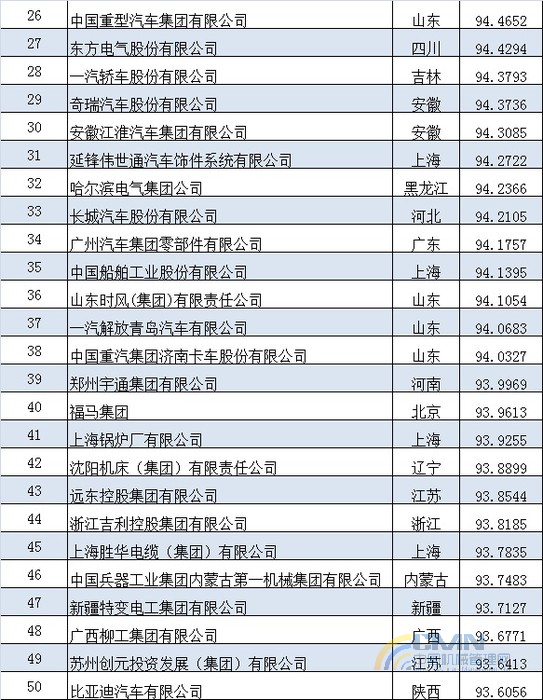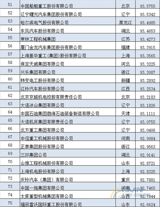 2012年中國(guó)機(jī)械500強(qiáng)排名(1-100)